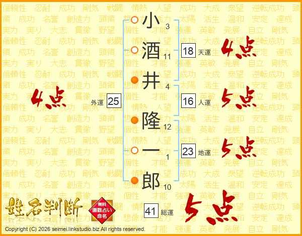 小酒井隆一郎さんの総運は41画の5点!