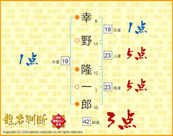 幸野隆一郎さんの人運は23画の5点!
