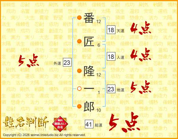 番(12画)匠(6画) 隆(12画)一(1画)郎(10画)