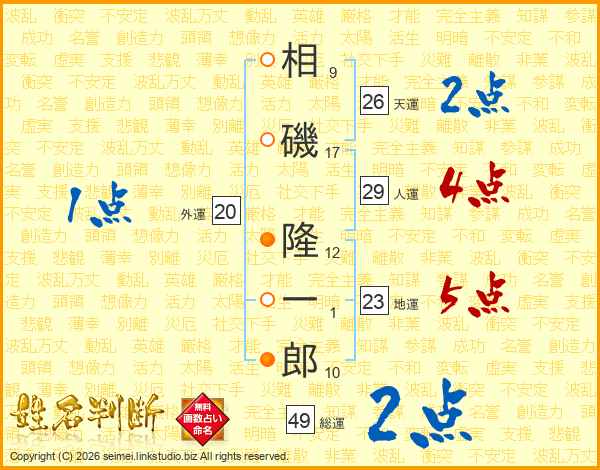 相磯隆一郎さんの天運は26画の2点!