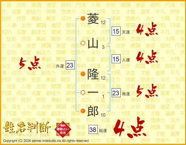 菱(12画)山(3画) 隆(12画)一(1画)郎(10画)