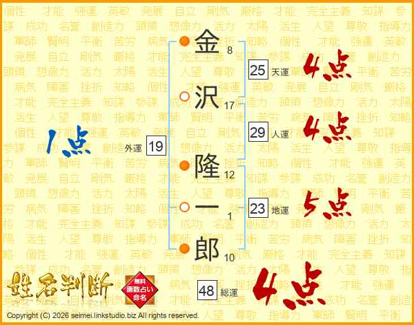 金沢隆一郎さんの天運は25画の4点!