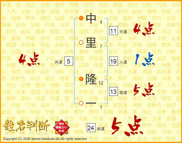 中里隆一さんの総運は24画の5点!