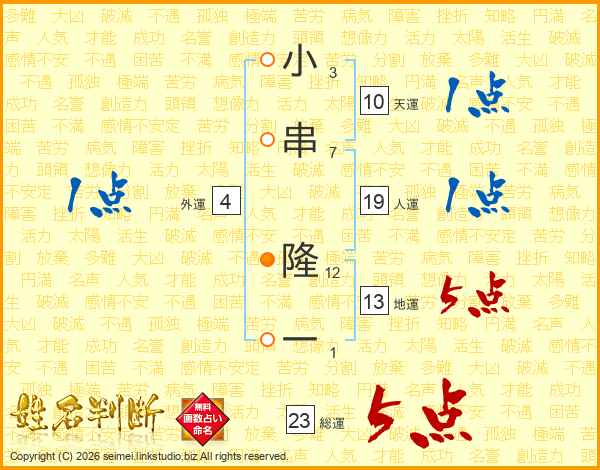 小串隆一さんの総運は23画の5点!