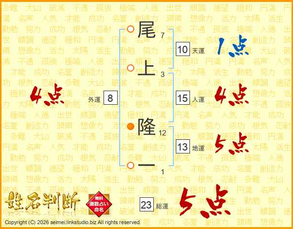 尾上隆一さんの総運は23画の5点!