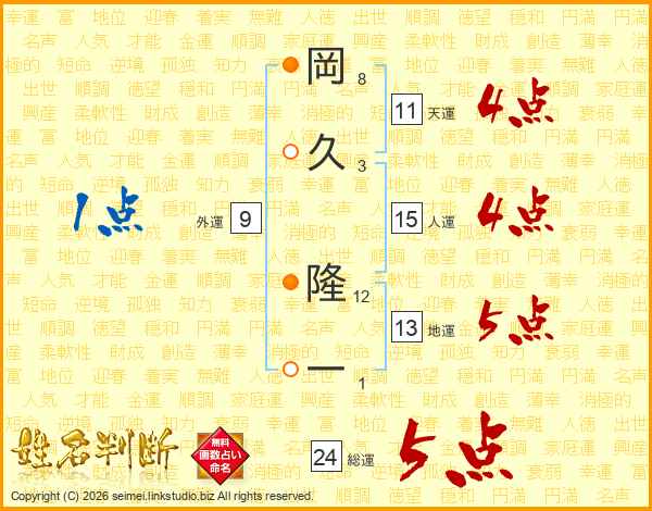 岡久隆一さんの総運は24画の5点!