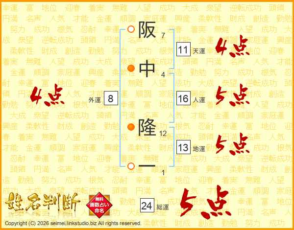阪中隆一さんの総運は24画の5点!