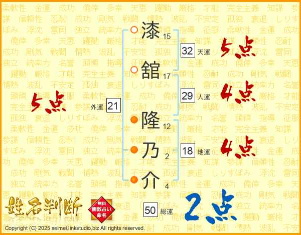 漆舘隆乃介さんの天運は32画の5点!