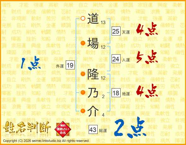 道場隆乃介さんの天運は25画の4点!