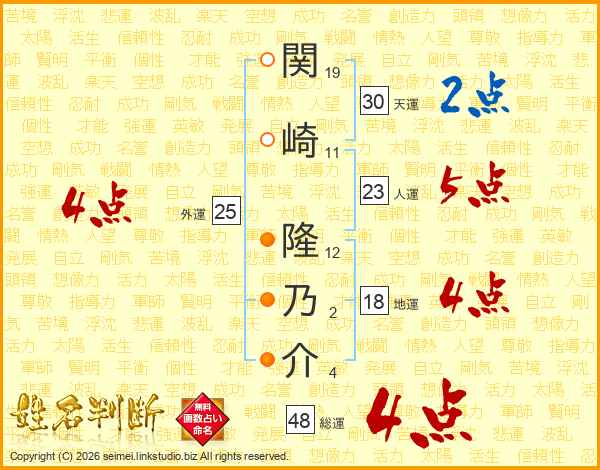 関崎隆乃介さんの天運は30画の2点!
