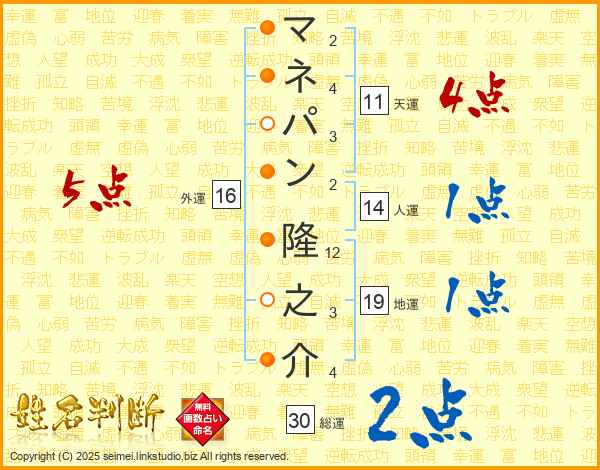 マ(2画)ネ(4画)パ(3画)ン(2画) 隆(12画)之(3画)介(4画)