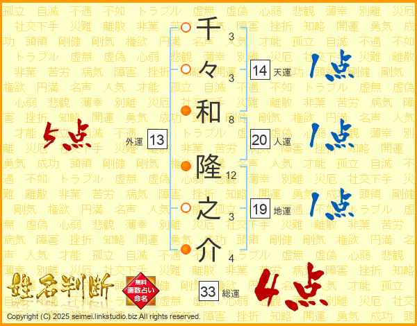千(3画)々(3画)和(8画) 隆(12画)之(3画)介(4画)