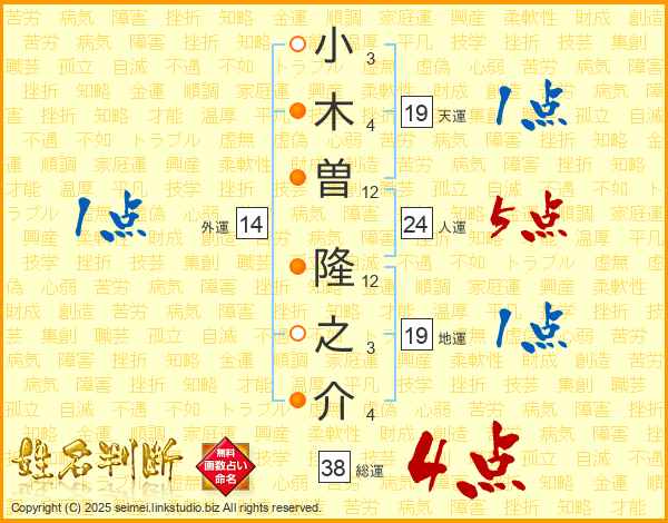 小木曽隆之介さんの総運は38画の4点!