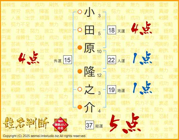 小(3画)田(5画)原(10画) 隆(12画)之(3画)介(4画)