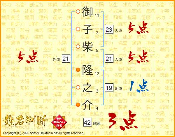 御子柴隆之介さんの外運は21画の5点!