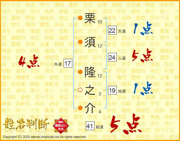 栗須隆之介さんの総運は41画の5点!