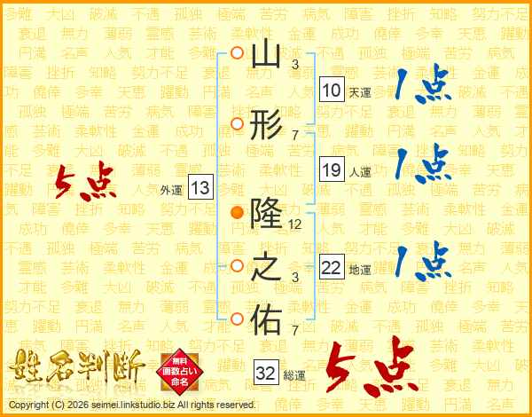 山(3画)形(7画) 隆(12画)之(3画)佑(7画)