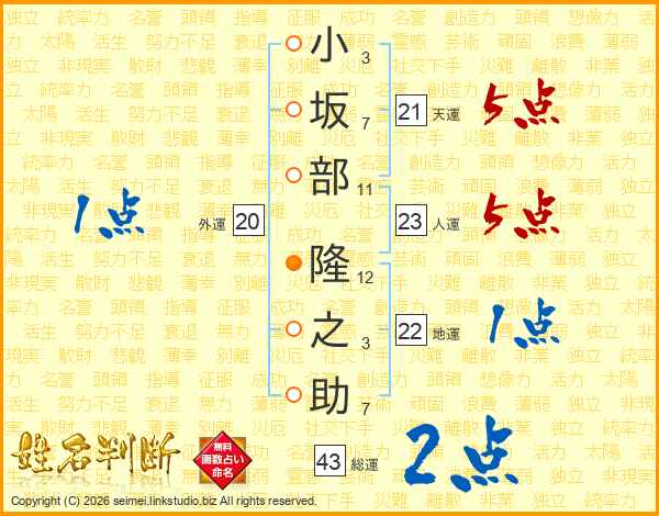 小坂部隆之助さんの総運は43画の2点!