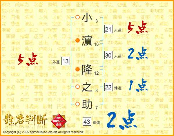 小(3画)濵(18画) 隆(12画)之(3画)助(7画)