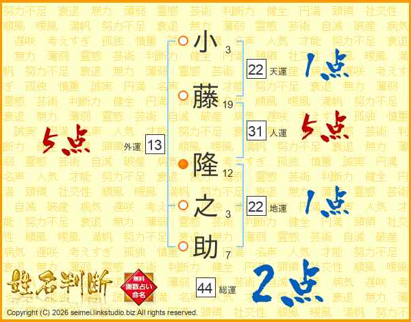 小(3画)藤(19画) 隆(12画)之(3画)助(7画)