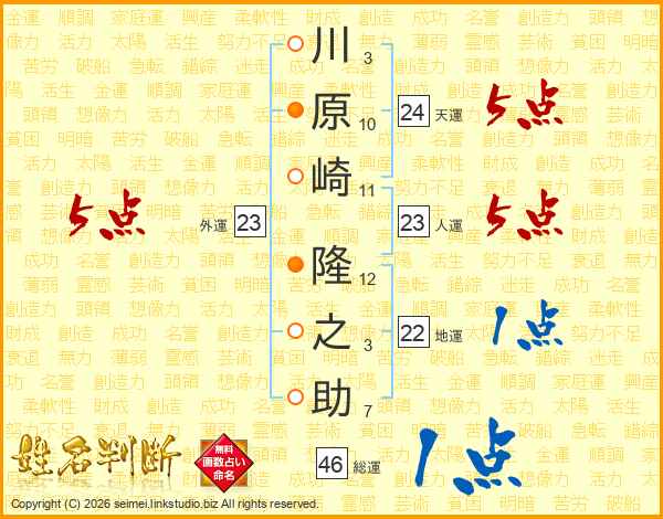 川原崎隆之助さんの総運は46画の1点!
