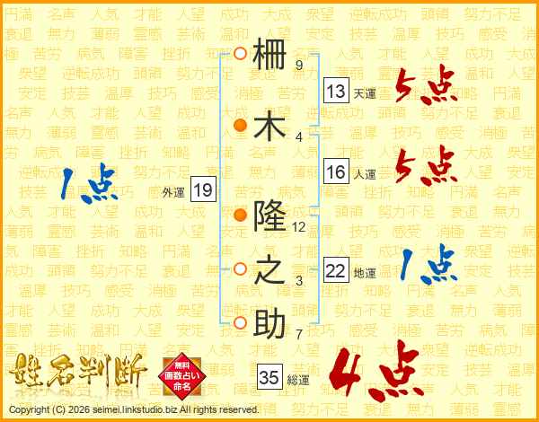 柵(9画)木(4画) 隆(12画)之(3画)助(7画)