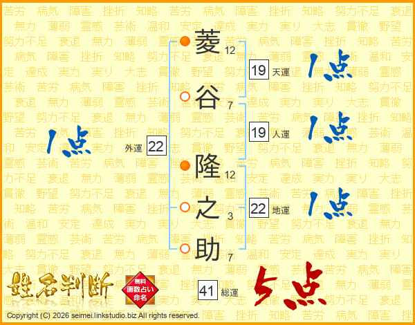 菱(12画)谷(7画) 隆(12画)之(3画)助(7画)