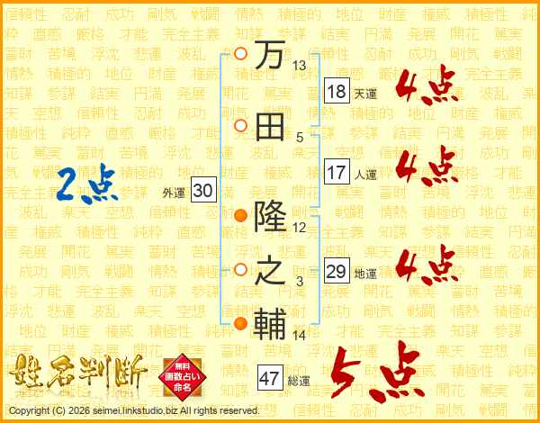 万田隆之輔さんの総運は47画の5点!