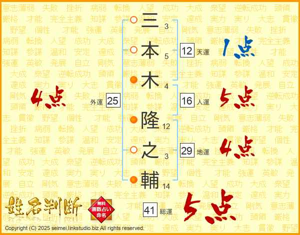 三(3画)本(5画)木(4画) 隆(12画)之(3画)輔(14画)