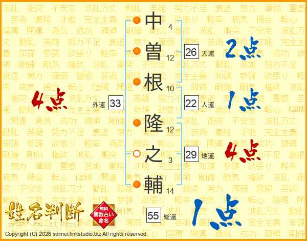 中曽根隆之輔さんの天運は26画の2点!