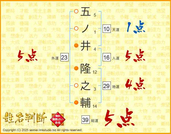 五ノ井隆之輔さんの総運は39画の5点!