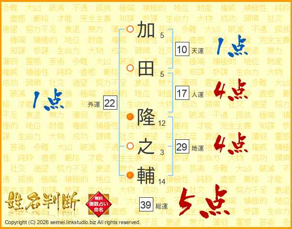 加田隆之輔さんの総運は39画の5点!