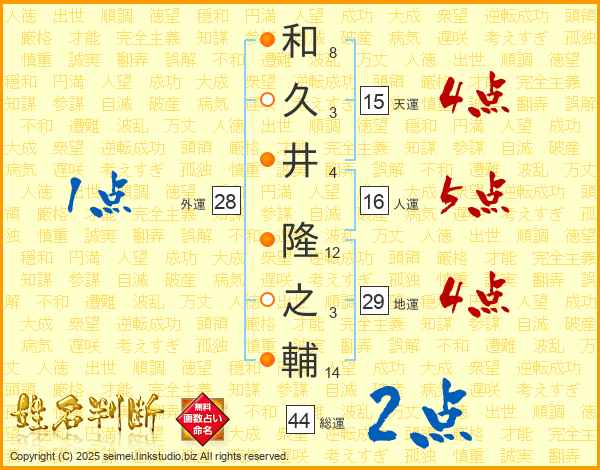 和(8画)久(3画)井(4画) 隆(12画)之(3画)輔(14画)