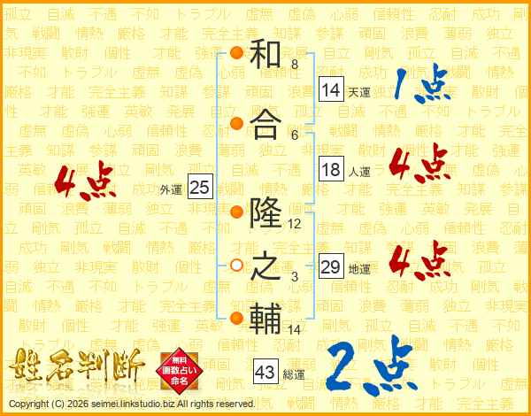 和合隆之輔さんの総運は43画の2点!