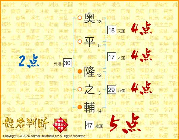 奥平隆之輔さんの総運は47画の5点!