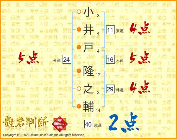 小井戸隆之輔さんの天運は11画の4点!