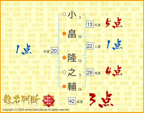 小(3画)畠(10画) 隆(12画)之(3画)輔(14画)