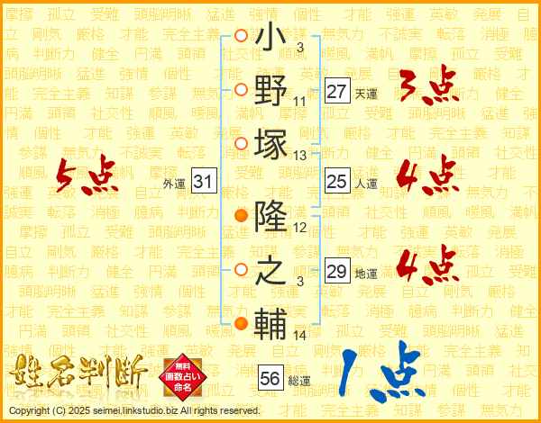 小(3画)野(11画)塚(13画) 隆(12画)之(3画)輔(14画)
