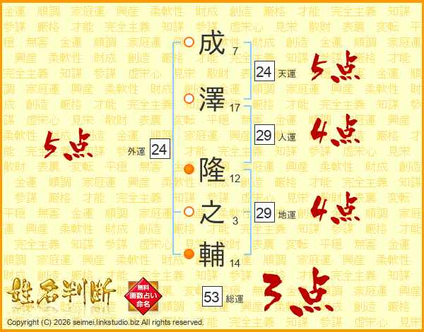 成(7画)澤(17画) 隆(12画)之(3画)輔(14画)