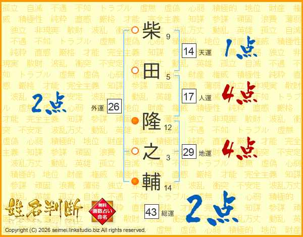 柴田隆之輔さんの天運は14画の1点!