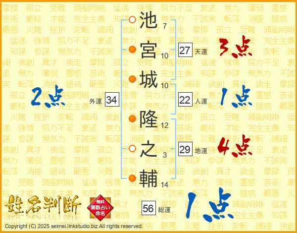 池(7画)宮(10画)城(10画) 隆(12画)之(3画)輔(14画)