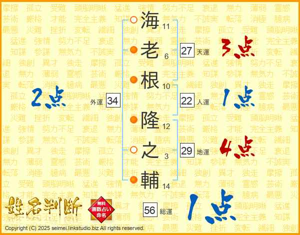 海(11画)老(6画)根(10画) 隆(12画)之(3画)輔(14画)