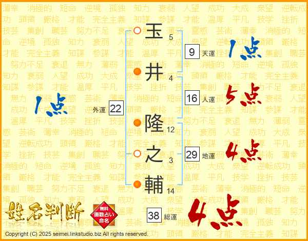 玉(5画)井(4画) 隆(12画)之(3画)輔(14画)
