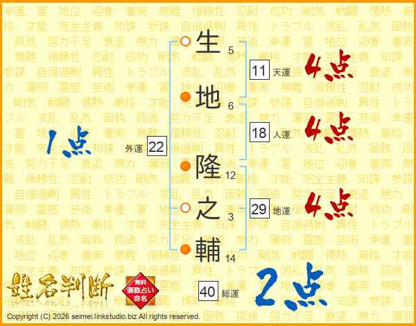 生(5画)地(6画) 隆(12画)之(3画)輔(14画)