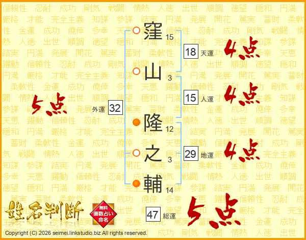 窪山隆之輔さんの総運は47画の5点!