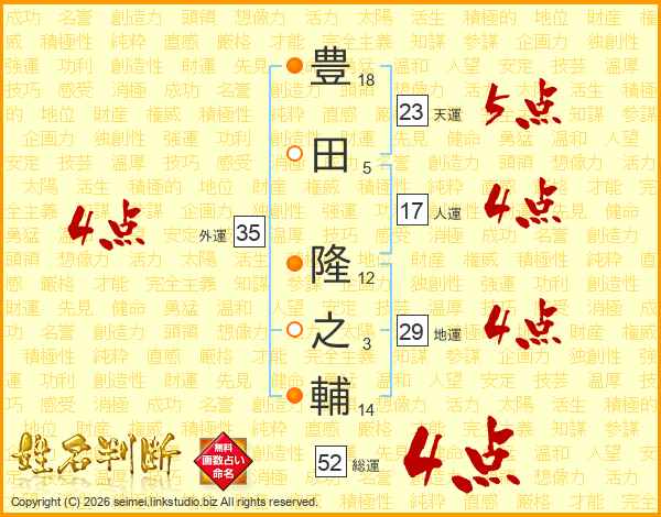 豊(18画)田(5画) 隆(12画)之(3画)輔(14画)