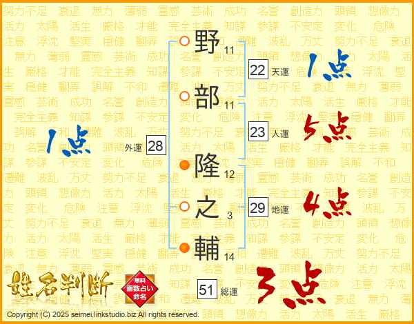 野(11画)部(11画) 隆(12画)之(3画)輔(14画)