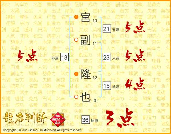 宮副隆也さんの天運は21画の5点!