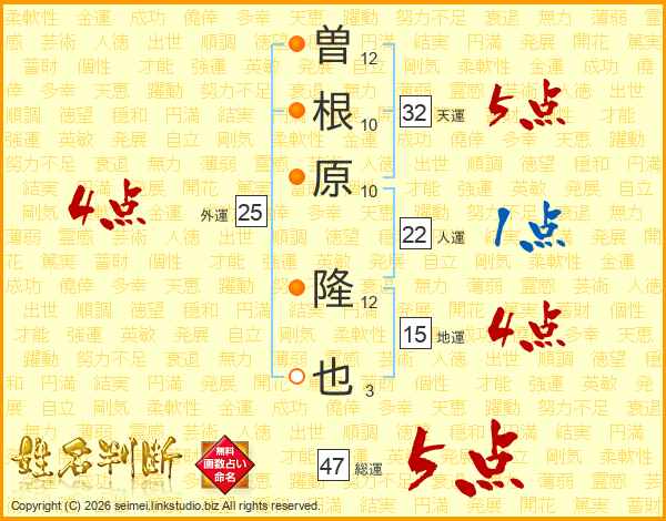 曽根原隆也さんの天運は32画の5点!