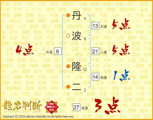 丹波隆二さんの総運は27画の3点!